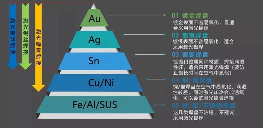 ¼¤¹âÎýº¸Æ¾¾ÝÎýÁÏ״̬·ÖΪÎý¸à¡¢ÎýË¿ÒÔ¼°ÎýÇò¼¤¹âº¸¡£Ïà±È´«Í³²¨·åº¸¡¢»ØÁ÷º¸¡¢ÊÖ¹¤ÀÓÌúÎýº¸µÈÎýº¸¹¤ÒÕ£¬¼¤ ¹â Îý º¸ µÄ ¼¤ ¹â ¹â Ô´ Ö÷ Òª Ϊ °ë µ¼ Ìå ¹â Ô´£¨808-980nm£©¡£ÓÉÓÚ°ëµ¼Ìå¹âÔ´Êô½üºìÍⲨ¶Î£¬¾ßÓÐÁ¼ºÃÈÈЧӦ£¬ÆäÌØÓеĹâÊø¾ùÔÈÐÔÓ뼤¹âÄÜÁ¿µÄÁ¬ÐøÐÔ£¬¶Ôº¸Å̵ľùÔȼÓÈÈ¡¢¿ìËÙÉýÎÂЧ¹ûÏÔÖø£¬¾ßÓк¸½ÓЧÂʸß¡¢º¸½ÓλÖÿɾ«È·¿ØÖÆ¡¢º¸µãÒ»ÖÂÐԺõÈÓÅÊÆ£¬ºÜÊÇÊʺÏС΢Ð͵ç×ÓÔªÆ÷¼þ¡¢½á¹¹ÅÓ´óµç·°å¼° PCB °åµÈ΢СÅÓ´ó½á¹¹Áã¼þµÄ¾«Ãܺ¸½Ó¡£