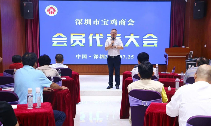 7月25日,深圳市宝鸡商会三届三次会员代表大会暨换届选举大会在深圳市智慧谷创成汇一楼陈诉厅顺利召开!宝鸡市政府驻深联络处冯宝平主任、原深圳市政协主任兼深圳市政协港澳台侨和外事委员会专职副主任董兵团和全体会员代表,以及部门在深宝鸡籍老领导、书法艺术家、企业家等行业知名专家60余人出席了此次大会。