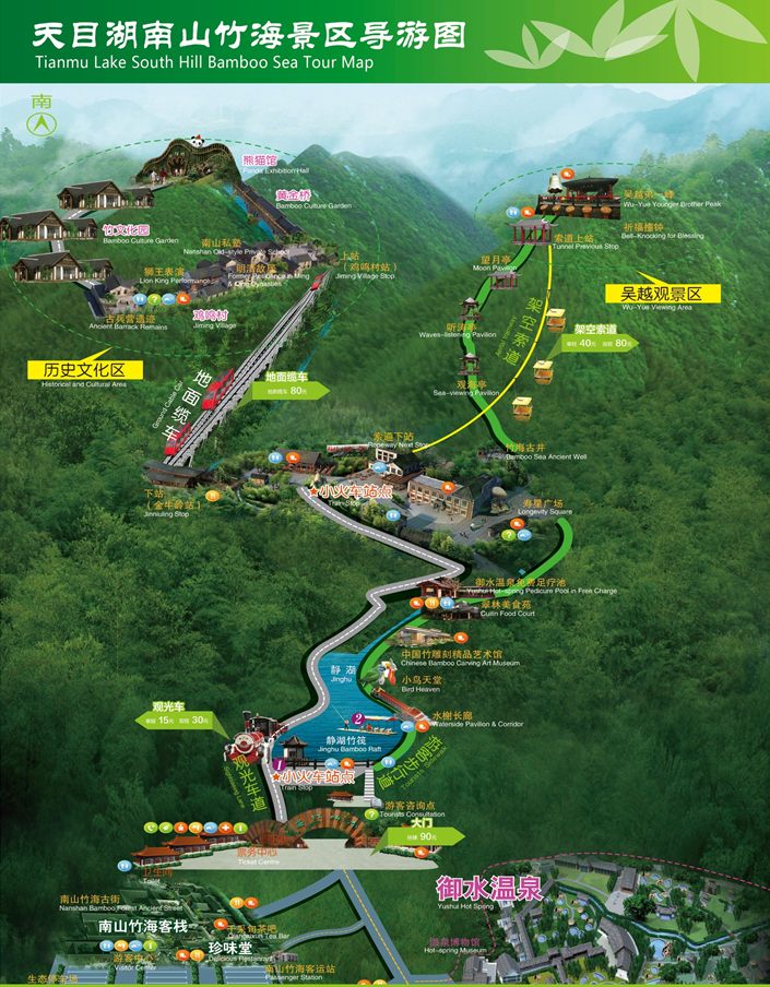 南山竹海的景区临近江浙沪三省接壤处,主要由两大景点组合,一片是有着古村和国宝熊猫的历史文化区,另一片就是吴越弟一峰了,也是本次爬山竞赛角逐的终点。其中登上吴越弟一峰的山顶可以直接感受一脚跨三省哦。