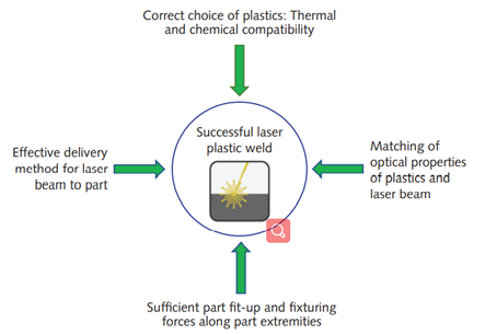 塑料产物具有优异的机械、几何、热力学和光学等特性(见图2),因此塑料产物的激光可焊接性由以下因素决定: