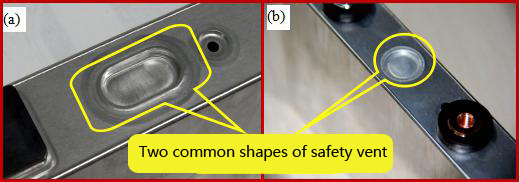 Äþ¾²·§ÊÇÃÜ·â°åÉϵı¡±Ú·§Ìå¡£µ±µç³ØÄÚѹÁè¼Ý»®¶¨ÖµÊ±£¬Äþ¾²·§½«ÆÆÁÑ£¬Îªµç³ØÌṩÑÚ»¤¡£½á¹¹ÇÉÃÐí¶àÄþ¾²Í¨·ç¿ÚÊÇµç³ØÖÆÔìÉ̵ÄרÀûÉè¼Æ¡£ËüµÄ»ù±¾ÔÀíÊÇʹÓü¤¹âº¸½ÓÁ½¸öÀι̵ÄÂÁ½ðÊô°å¡£µ±ÄÚѹÁè¼ÝÒ»¶¨ÖµÊ±£¬ÂÁƬ»áÔÚ°¼²ÛÄÚ¿ªÁÑ£¬·ÀÖ¹µç³Ø±¬ÁÑ¡£Òò´Ë£¬¸Ã¹¤ÒÕ¶Ô¼¤¹âº¸½Ó¹¤Òյļ¼ÊõÒªÇóºÜ¸ß£¬±ØÐëʹº¸·ìÃÜ·âÁ¼ºÃ¡£´ËÍ⣬º¸·ìµÄ¶ÏÁÑѹÁ¦Ó¦´óÓÚÂÁ°åÆÂ¿ÚµÄ¶ÏÁÑѹÁ¦¡£ÏÂͼ 8 ÏÔʾÁËÁ½ÖÖ³£¼ûµÄÄþ¾²Í¨·ç¿Ú