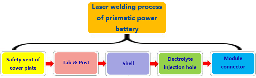 ÕâÈýÖÖµç³ØÄ¿Ç°¶¼ÓÃÓڵ綯Æû³µµÄÉú²úÖУ¬ÆäÖÐÀâÖùÐÎµç³ØºÍÔ²ÖùÐÎµç³ØÓ¦ÓñÈÁ¦¹ã·º¡£²îÒìÐÎ×´µÄ¶¯Á¦µç³Ø¾ßÓвîÒìµÄº¸½Ó¹¤ÒÕ²ÎÊý¡£ÌØË¹Àµç¶¯Æû³µ¾ÍÊÇÒ»¸öºÜºÃµÄÀý×Ó¡£Ëü½ÓÄÉµç³Ø×é½áºÏ7000¶àƬËÉÏÂNCR 18650 3100mah£¬È·±£µç³ØÊÙÃü³¤¡£´ËÍ⣬ÖйúÊг¡ÉÏ×îÍÑÏúµÄµç¶¯Æû³µ±ÈÑǵÏÍõ³¯ÏµÁÐÖ»ÊÇµç³Ø×éÓëÂÁ¿ÇÀâÖùÐÎµç³Ø×éºÏµÄÁíÒ»¸öÀý×Ó¡£·½Ðζ¯Á¦µç³Ø¼¤¹âº¸½Ó¹¤ÒÕÁ÷³ÌÈçͼ4Ëùʾ¡£