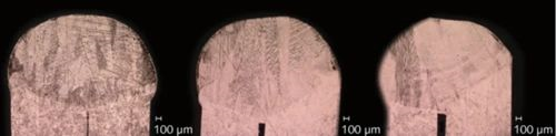2£©½ÓÄÉ450nm²¨³¤µÄÀ¶¹â°ëµ¼Ìå¹âÔ´£¬¿ÉÒÔÔÚµ¼ÈÈģʽÏÂÈÛ»¯ÍÖÊÁÏ£¬´Ó¶ø¿ÉÒÔ¾«È·µ÷Õû±¡ÍÖÊÁϵÄÈ۳ؼ¸ºÎÐÎ×´£¨¼ûͼ7£©¡£Îȶ¨µÄÄÜÁ¿ÎüÊպ͵¼ÈÈÀú³ÌµÄ¾«È·¿ØÖƶÔÓÚÉîÈÛº¸½Ó±¡ÍÖÊÁÏÓÈÆäÖØÒª£¬Ö÷ÒªÊÇÒòΪËüÓÐÖúÓÚ·ÀÖ¹Òò¸ßѹ¶øµ¼Ö¶Ա¡ÖÊÁϵÄÇжϻò·É½¦µÄ·¢Éú¡£ÕâЩÏÖÏóÓÈÆä¿ÉÄÜÔÚº¸½Ó¶ÑµþµÄ±¡Í²Ê±·¢Éú£¬ÓÉÓڶѵþ²µÄÇÌÇú£¬Æä¿ÉÄܻᷢÉúÄÑÒÔ¿ØÖƵIJ»¹æÔò¼ä϶£¨¼ûͼ8£©¡£ÔÚ34¸ö¶ÑµþµÄͲÉϽÓÄÉ580WÀ¶¹â°ëµ¼Ì弤¹âÆ÷ºÍ2m/minµÄËٶȽøÐжԽӺ¸½Óʱ£¬¿ÉÒÔÔÚ×îСµÄ¿×϶Âʺ͵ÍÒ§±ßµÄÇé¿öÏÂÐγɣ¾0.8mmµÄº¸·ì¿í¶È¡£¶ÔÓÚÔÚ²¶ÑµþµÄ±ßÔµÉϽøÐнǺ¸£¬Àֳɵؽ«²µÄÄ©¶ËÈÛ»¯³É¸ßºá½ØÃæ»ý£¬²¢ÍêÈ«¸½×ŵ½¹ÌÌå²ÉÏ¡£ÔڶԽӺͱßÔµº¸½ÓÖУ¬¾ù¿ÉÒÔʵÏÖÍêÃÀµÄ»úеÁ¬½ÓÒÔ¼°·Ç³£ºÃµÄµ¼µçÐÔ¡£