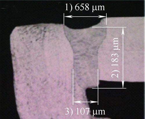 ͼ3 ºñ¶ÈΪ500µmÍÆ¬Öе¼ÈȺ¸½Óģʽ½ØÃæ