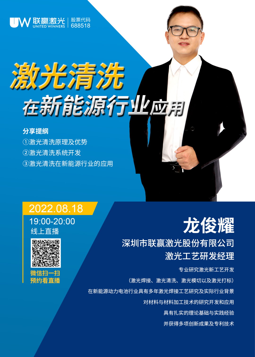 陪同着工业化进程加速和“双碳”目标稳步推进,激光清洗逐步取代传统清洗工艺,并逐渐成为新能源行业不行或缺的装备制造技术。