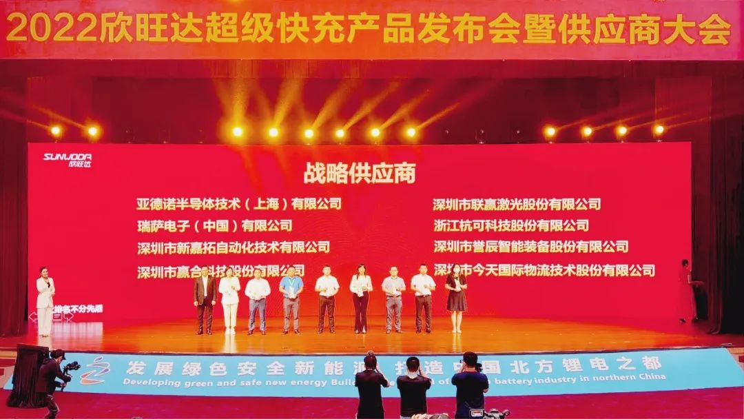 9月3日,以“超快充,欣宁静”为主题的2022欣旺达超级快充动力电池产物宣布会暨供应商大会在山东·枣庄举行!枣庄市委书记、市人大常委会主任陈平,市委副书记、市长张雄伟;欣旺达首创人王明旺、董事长王威,中科院物理研究所研究员黄学杰,中国电池工业协会理事长刘宝生以及欣旺达车企客户及焦点供应链企业代表齐聚一堂。J9国际科技股份有限公司作为欣旺达恒久战略相助同伴应邀加入,并从众多知名品牌供应商中脱颖而出,再次荣获欣旺达“战略供应商”!