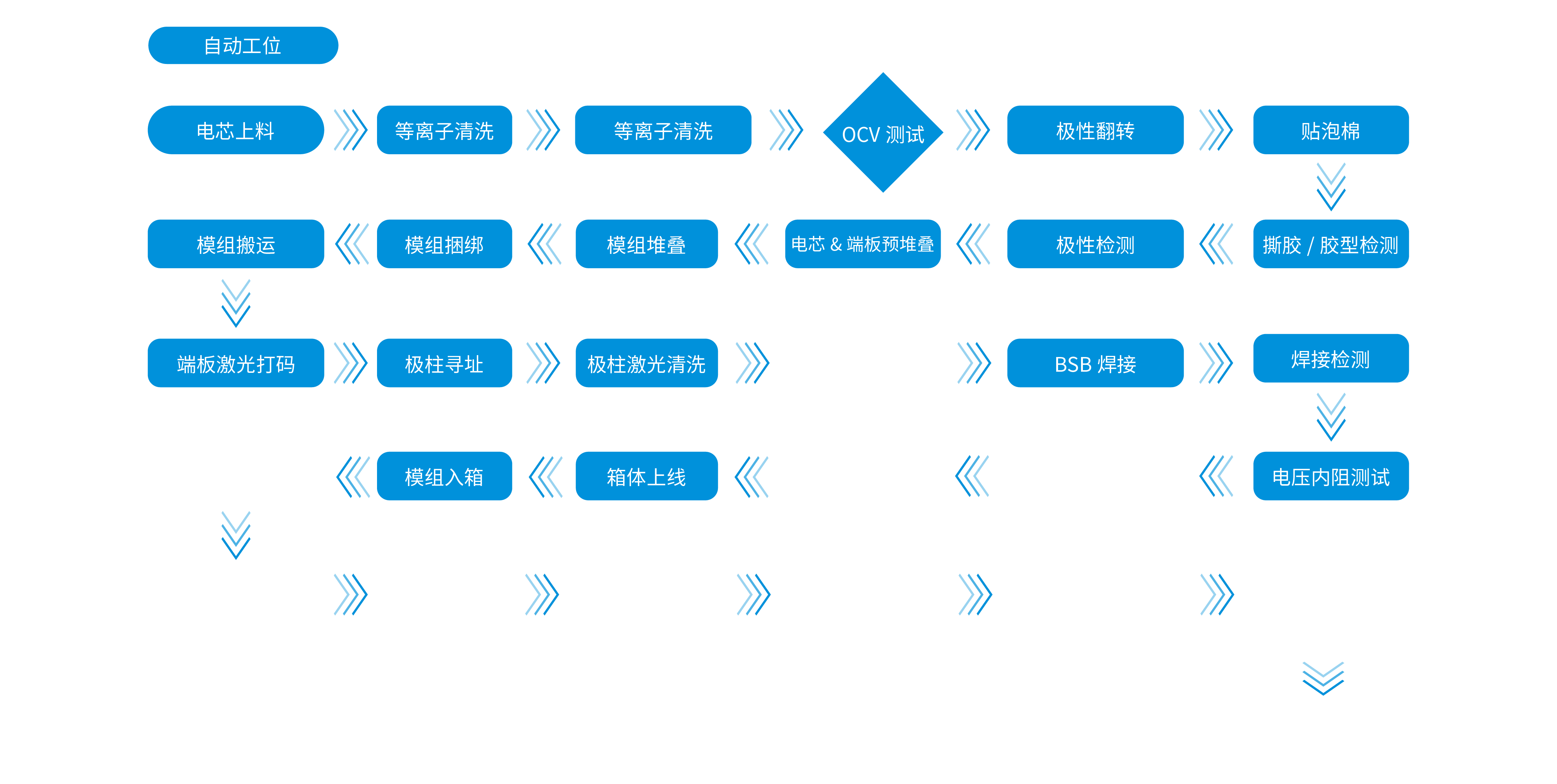 实现AGV上料、电芯自动线、模组焊接自动线试、PACK成组及测试等功效